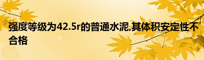 关于强度等级为42.5r的普通水泥,其体积安定性不合格这个很多人还不知道,今天菲菲来为大家解答以上的问题,现在让我们一起来看看吧!