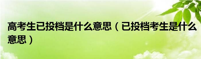 大家好,小晋来为大家解答以下问题,关于高考生已投档是什么意思,已投档考生是什么意思很多人还不知道,今天让我们一起来看看吧!