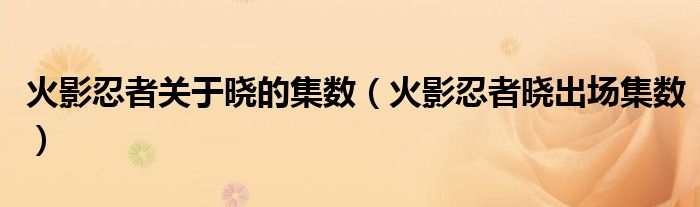 关于火影忍者关于晓的集数,火影忍者晓出场集数这个很多人还不知道,今天菲菲来为大家解答以上的问题,现在让我们一起来看看吧!