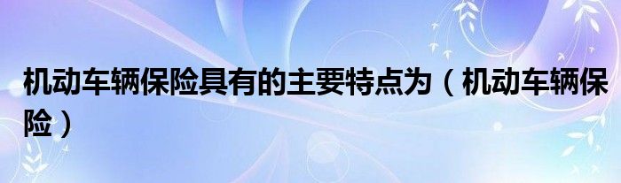 关于机动车辆保险具有的主要特点为,机动车辆保险这个很多人还不知道,今天菲菲来为大家解答以上的问题,现在让我们一起来看看吧!