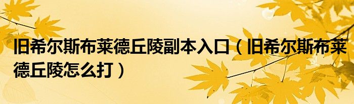 关于旧希尔斯布莱德丘陵副本入口,旧希尔斯布莱德丘陵怎么打这个很多人还不知道,今天菲菲来为大家解答以上的问题,现在让我们一起来看看吧!