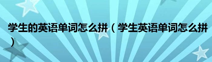 关于学生的英语单词怎么拼,学生英语单词怎么拼这个很多人还不知道,今天菲菲来为大家解答以上的问题,现在让我们一起来看看吧!