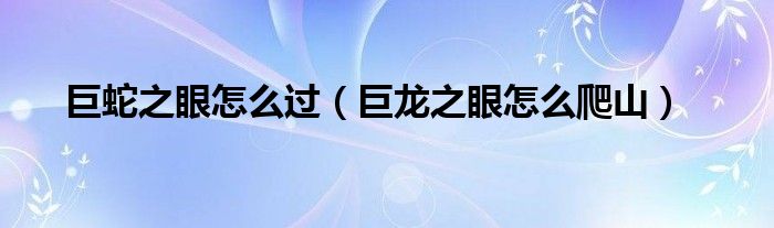 关于巨蛇之眼怎么过,巨龙之眼怎么爬山这个很多人还不知道,今天菲菲来为大家解答以上的问题,现在让我们一起来看看吧!