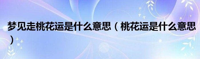 关于梦见走桃花运是什么意思,桃花运是什么意思这个很多人还不知道,今天菲菲来为大家解答以上的问题,现在让我们一起来看看吧!