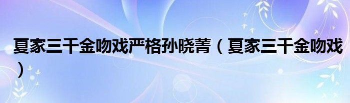 关于夏家三千金吻戏严格孙晓菁,夏家三千金吻戏这个很多人还不知道,今天菲菲来为大家解答以上的问题,现在让我们一起来看看吧!