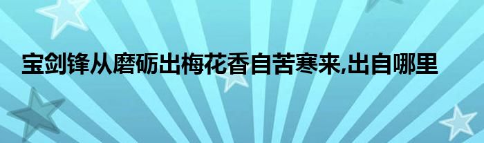 关于宝剑锋从磨砺出梅花香自苦寒来,出自哪里这个很多人还不知道,今天菲菲来为大家解答以上的问题,现在让我们一起来看看吧!