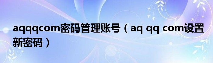 aqqqcom密码管理账号(aqqqcom设置新密码)
