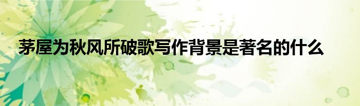 关于茅屋为秋风所破歌写作背景是著名的什么这个很多人还不知道,今天菲菲来为大家解答以上的问题,现在让我们一起来看看吧!