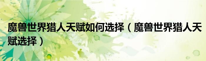 关于魔兽世界猎人天赋如何选择,魔兽世界猎人天赋选择这个很多人还不知道,今天菲菲来为大家解答以上的问题,现在让我们一起来看看吧!