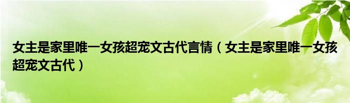 关于女主是家里唯一女孩超宠文古代言情,女主是家里唯一女孩超宠文古代这个很多人还不知道,今天菲菲来为大家解答以上的问题,现在让我们一起来看看吧!