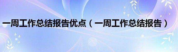 关于一周工作总结报告优点,一周工作总结报告这个很多人还不知道,今天菲菲来为大家解答以上的问题,现在让我们一起来看看吧!