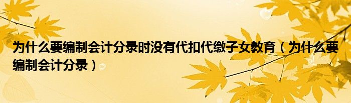 关于为什么要编制会计分录时没有代扣代缴子女教育,为什么要编制会计分录这个很多人还不知道,今天菲菲来为大家解答以上的问题,现在让我们一起来看看吧!