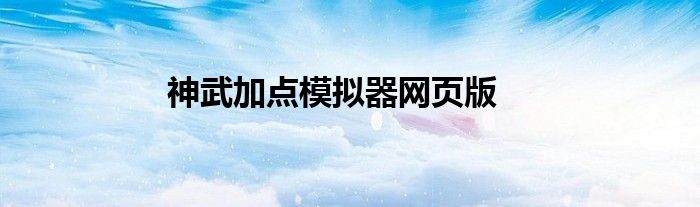 神武加点模拟器网页版