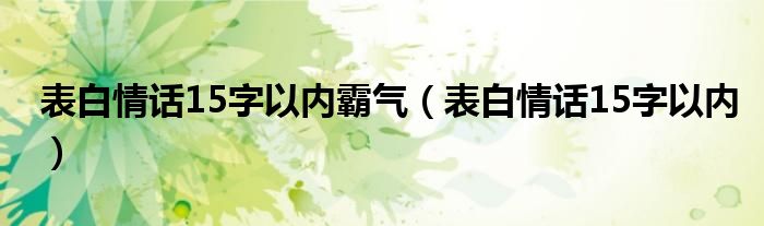 表白情话15字以内霸气,表白情话15字以内很多人还不知道,乐乐来为大家解答以上问题,现在让我们一起来看看吧!