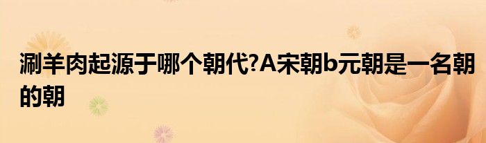 关于涮羊肉起源于哪个朝代?A宋朝b元朝是一名朝的朝这个很多人还不知道,今天菲菲来为大家解答以上的问题,现在让我们一起来看看吧!