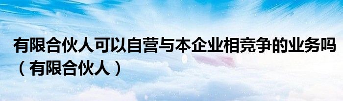 关于有限合伙人可以自营与本企业相竞争的业务吗,有限合伙人这个很多人还不知道,今天菲菲来为大家解答以上的问题,现在让我们一起来看看吧!