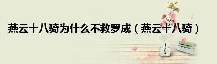 关于燕云十八骑为什么不救罗成,燕云十八骑这个很多人还不知道,今天菲菲来为大家解答以上的问题,现在让我们一起来看看吧!