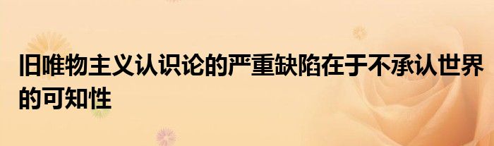 关于旧唯物主义认识论的严重缺陷在于不承认世界的可知性这个很多人还不知道,今天菲菲来为大家解答以上的问题,现在让我们一起来看看吧!