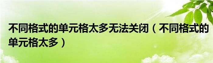 关于不同格式的单元格太多无法关闭,不同格式的单元格太多这个很多人还不知道,今天菲菲来为大家解答以上的问题,现在让我们一起来看看吧!