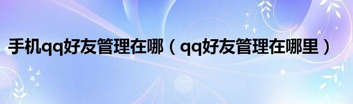 关于手机qq好友管理在哪,qq好友管理在哪里这个很多人还不知道,今天菲菲来为大家解答以上的问题,现在让我们一起来看看吧!