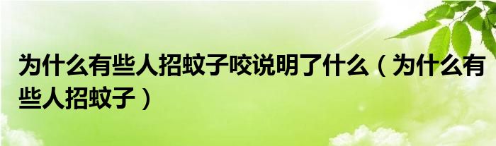 关于为什么有些人招蚊子咬说明了什么,为什么有些人招蚊子这个很多人还不知道,今天菲菲来为大家解答以上的问题,现在让我们一起来看看吧!