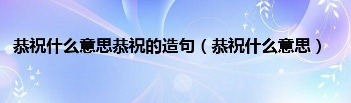 关于恭祝什么意思恭祝的造句,恭祝什么意思这个很多人还不知道,今天菲菲来为大家解答以上的问题,现在让我们一起来看看吧!