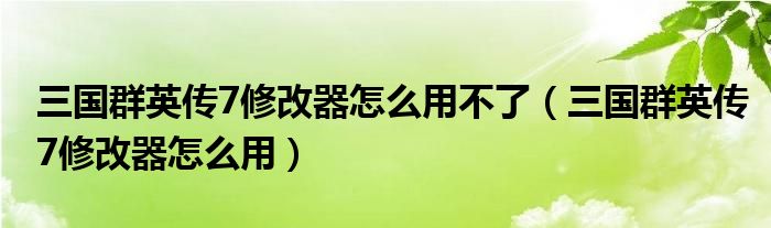 关于三国群英传7修改器怎么用不了,三国群英传7修改器怎么用这个很多人还不知道,今天菲菲来为大家解答以上的问题,现在让我们一起来看看吧!