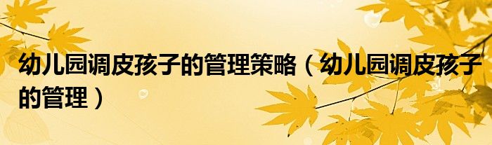 关于幼儿园调皮孩子的管理策略,幼儿园调皮孩子的管理这个很多人还不知道,今天菲菲来为大家解答以上的问题,现在让我们一起来看看吧!