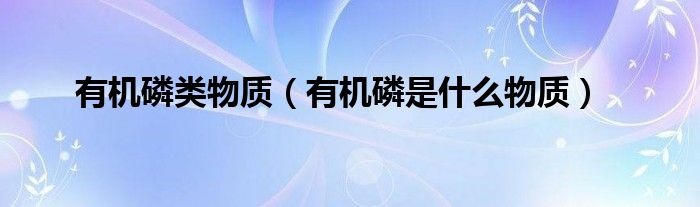 关于有机磷类物质,有机磷是什么物质这个很多人还不知道,今天菲菲来为大家解答以上的问题,现在让我们一起来看看吧!