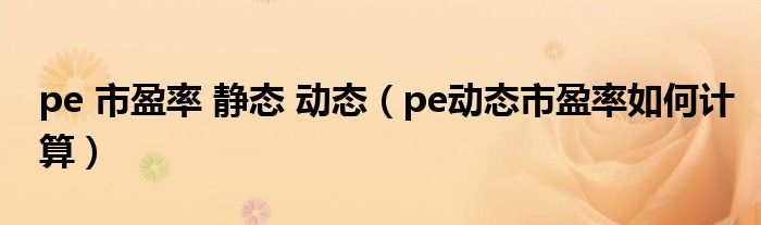 关于pe 市盈率 静态 动态,pe动态市盈率如何计算这个很多人还不知道,今天菲菲来为大家解答以上的问题,现在让我们一起来看看吧!