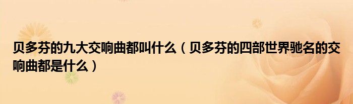 关于贝多芬的九大交响曲都叫什么,贝多芬的四部世界驰名的交响曲都是什么这个很多人还不知道,今天菲菲来为大家解答以上的问题,现在让我们一起来看看吧!