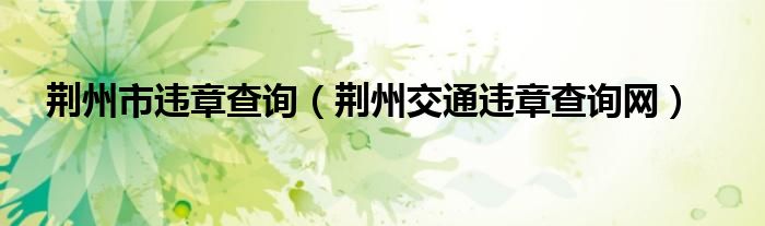 关于荆州市违章查询,荆州交通违章查询网这个很多人还不知道,今天菲菲来为大家解答以上的问题,现在让我们一起来看看吧!