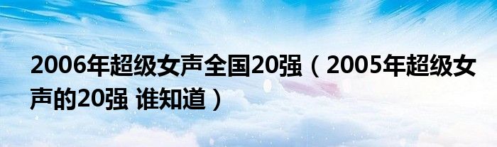 关于2006年超级女声全国20强,2005年超级女声的20强 谁知道这个很多人还不知道,今天菲菲来为大家解答以上的问题,现在让我们一起来看看吧!