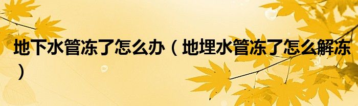地下水管冻了怎么办(地埋水管冻了怎么解冻)
