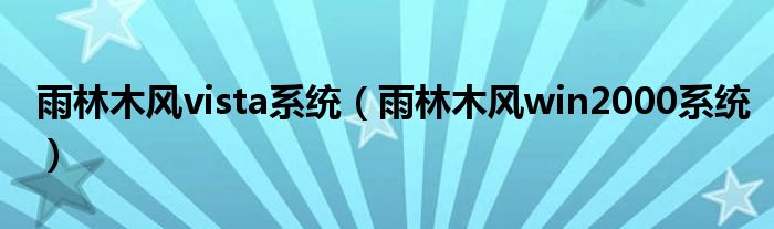 关于雨林木风vista系统,雨林木风win2000系统这个很多人还不知道,今天菲菲来为大家解答以上的问题,现在让我们一起来看看吧!