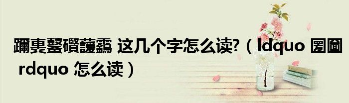 关于躎軣鼜礥蘐靎 这几个字怎么读?,ldquo 圐圙 rdquo 怎么读这个很多人还不知道,今天菲菲来为大家解答以上的问题,现在让我们一起来看看吧!
