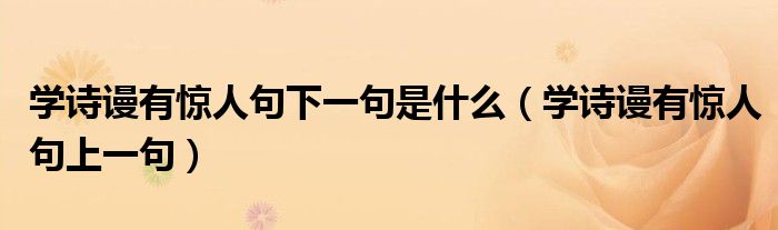 大家好,小晋来为大家解答以下问题,关于学诗谩有惊人句下一句是什么,学诗谩有惊人句上一句很多人还不知道,今天让我们一起来看看吧!